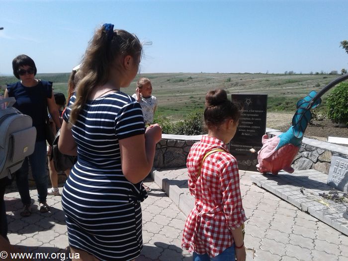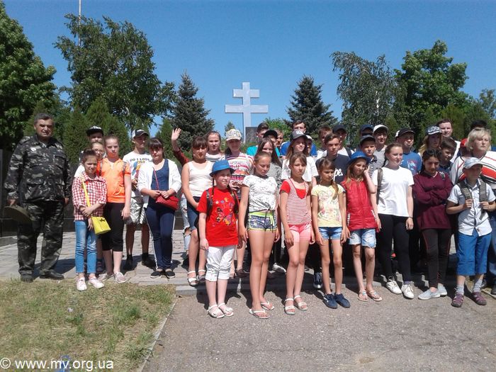 «Этот мемориальный комплекс находится на месте захоронения более 600 останков солдат, которые погибли при прорыве линии обороны «Вотан». Место это особое – у стеллы с фамилиями павших солдат десятки гранитных крестов на месте захоронения останков, памятник женскому штрафному батальону. На комплексе стоит грозное оружие – легендарная ЗиС-3, памятник полностью сделан из остатков оружия, гильз и снарядов, найденных поисковиками. В одном монументе слились каски и снаряды, гильзы и саперские лопатки, стволы оружия и гранаты. Вот эти склоны штурмовали войска. Местность простреливалась на многие километры. Наши солдаты шли на верную смерть. А вверху их ждали немецкие пулеметные гнезда. В небольшой часовне, которая находится на территории мемориала, иерей Игорь Мешков совершил панихиду о погибших воинах. Ребята, помолившись, поставили свечи об упокоении погибших душ. Атаман Александр Литвин рассказал детям о трагических событиях военных лет и истории создания мемориального комплекса, являющимся одним из самых важных и больших в Украине. Вечная память и царство небесное героям, отдавших свою жизнь за ближних своих»!» – рассказала Е. Сарбаш.
