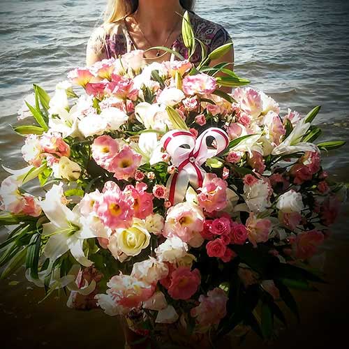 Количество цветов в преподносимой Вами композиции может быть абсолютно любое, но нечетное (особенно, если цветов немного). Красиво смотрятся пышные букеты из гербер или роз. Пионы или орхидеи будут восхитительно смотреться и не в большом количестве. Самое важное - не размер композиции и количество цветов в ней, а гармония ее исполнения и тот смысл, который она несет. Интернет-магазин цветов "Квіточка" работает круглыми сутками, чтобы Вы могли в любой момент найти букет по душе, который точно надолго останется в сердцах молодоженов.