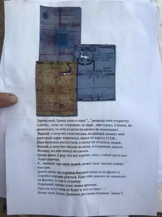 Известно, что батальон погибшего бойца попал в окружение: в героическом бою погибли все. Среди останков обнаружили и неотправленное письмо на армянском.