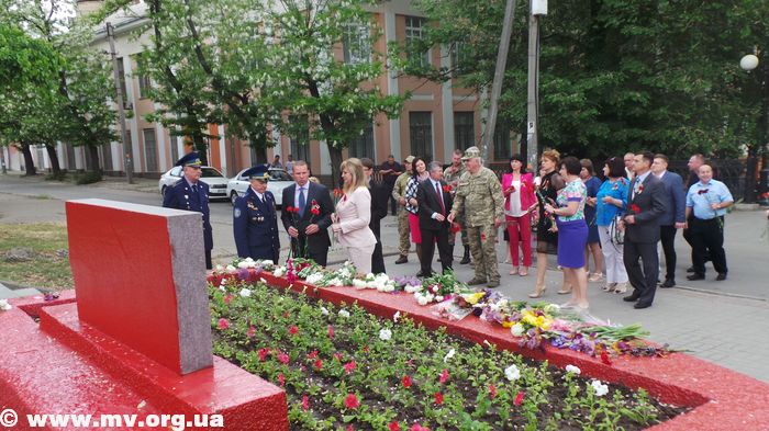 Представители городской власти и все желающие возлагали цветы к мемориальной доске Ивану Николаевичу Захари, на Аллее Героев Советского Союза, памятнику "Героям-подпольщикам", мемориальному комплексу по ул. Героев Крут, памятнику Герою Советского Союза Андрею Штевневу, памятнику погибшему экипажу ИЛ-76.