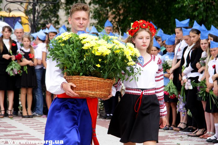 Парень с девушкой в национальных костюмах первым делом возложили цветы к мемориалу. Люди стоя спели гимн Украины, к мемориалу солдаты внесли флаги Украины и Мелитопольского района, после чего с теплыми словами поздравления ветеранам выступили глава Мелитопольской РГА Сергей Селевич и глава райсовета Александр Мордик, депутат райсовета Василий Масалабов.