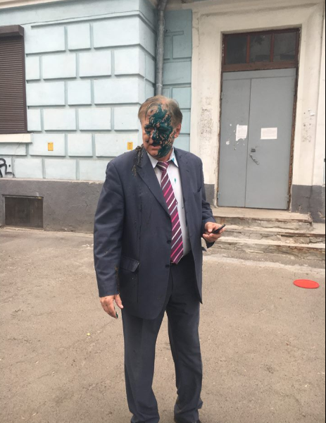 Утром 9 мая радикалы из С14 облили зеленкой руководителя Российского центра науки и культуры в Киеве Константина Воробьева.