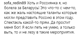sofa_redin89 Хоть и Россиянка я, но болела за Беларусь! Это что-то с чем-то, как же жаль настоящие таланты которые могли представить Россию в этом году. Спектакль какой-то прям. Да простит меня бог! Я если петь не умею, а только выть, то и не лезу в такие мероприятия.