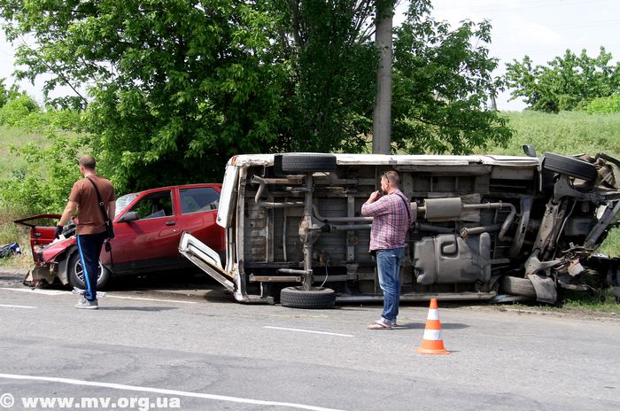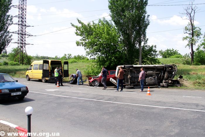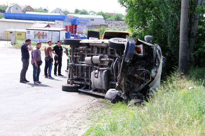 В Мелитополе перевернулся микроавтобус