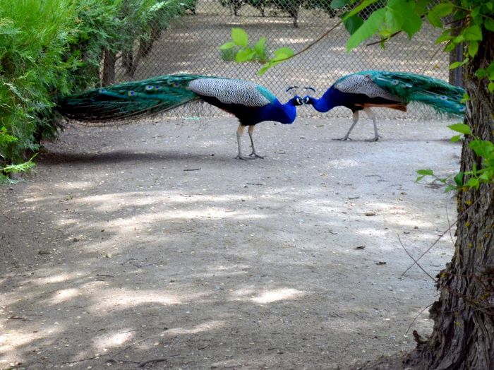 По дорожкам путешествуют павлины. И они, и лебеди, очень похожие на самых обычных гусей, везде летают, бегают и клюют, а павлины еще и дерутся, и мяукают как обычные коты. Везде в заповедной зоне видны таблички: «Хода нет», там работают ученые. Но павлинам везде вход разрешен. Они там как дома, в природе!