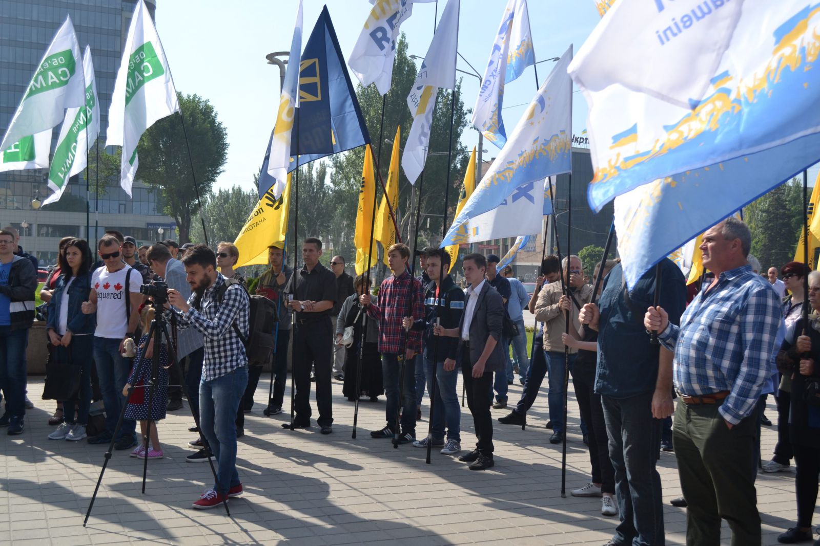 Под стенами Запорожского облсовета собрались митингующие (ФОТО)