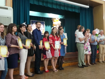 Директор МАН Елена Прокопенко выполнила радостную и немного грустную миссию, вручив свидетельства об окончании Малой академии 11 ее выпускникам. Трогательными были слова благодарности своим педагогам и научным руководителям Е. И В. Хромышевым от выпускников секции "Химия" МАН Дарьи Перетятко и Антона Гончаровского.
