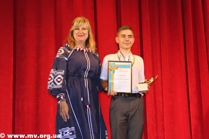 Первый заместитель городского головы Ирина Рудакова прямо на сцене открыла конверт с именем ученика, который в этом году стал лучшим среди всех мелитопольских школьников. Номинации удостоился восьмиклассник СШ № 25 Виктор Данченко, победитель IV (заключительного) этапа Всеукраинской олимпиады по биологии.