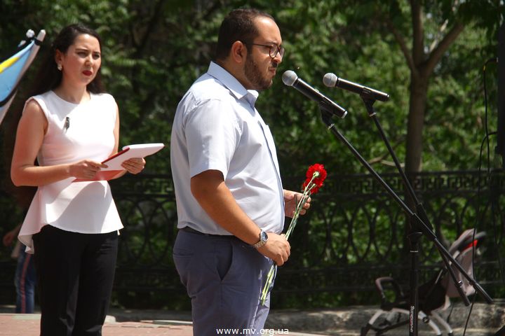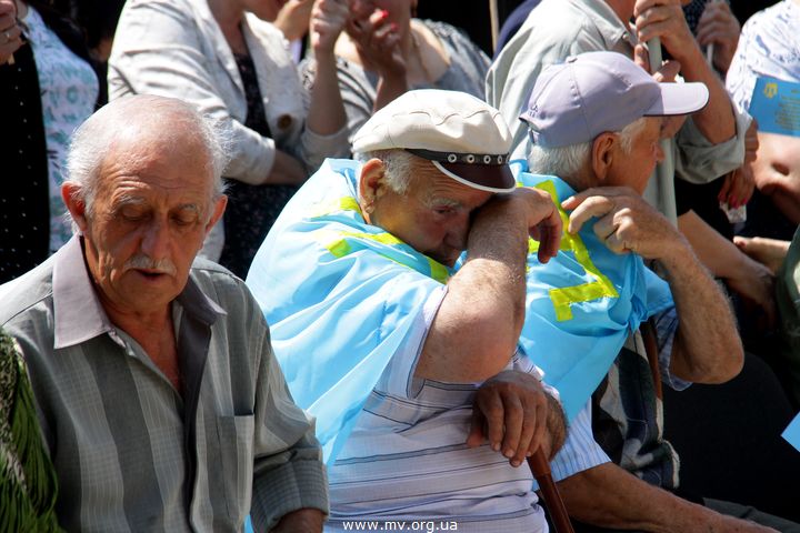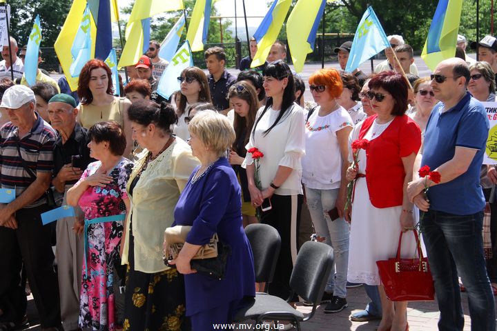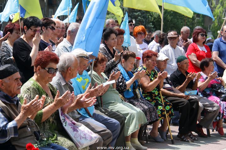 Торжественный митинг начался с Государственного гимна Украины и гимна крымскотатарского народа. Ведущие напомнили собравшимся, что на рассвете 18 мая 1944 года началось выполнение приказа Сталина о принудительном выселении крымских татар в Среднюю Азию и Казахстан. Беспочвенно оклеветав целый народ - от седовласых стариков до младенцев, обвинив их в "сотрудничестве с Третьим рейхом", людей выгоняли из собственных домов, дав всего несколько минут на сборы, и гнали к железнодорожным станциям, где грузили, как скот, в "товарняки" и отправляли из Крыма. За три дня было выслано около 200 тыс. человек. И при этом семь крымских татар были удостоены высокого звания "Герой Советского Союза", среди которых летчик Аметхан Султан - дважды; пять - кавалеры орденов славы; из 32 руководителей подполья в Крыму 25 были крымскими татарами; четыре крымских татарина на полях сражений стали генералами. Также после демобилизации в 1945-1946 гг. было выслано еще около 9 тыс. крымских татар-ветеранов войны. За полтора года геноцида крымскотатарского народа погибло 46 процентов депортированных.