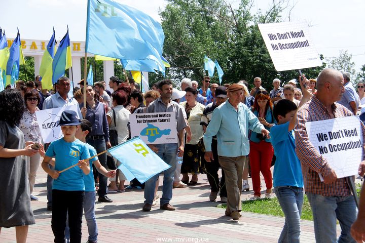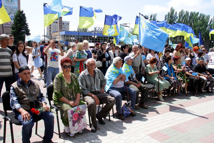 18 мая площадь Победы пестрела желто-голубыми украинскими и голубыми с желтой тамгой крымскотатарскими флагами. Мелитопольцы собрались на митинг, чтобы почтить память крымских татар - жертв депортации 1944 года. Тогда погибла почти половина всего крымскотатарского народа.
