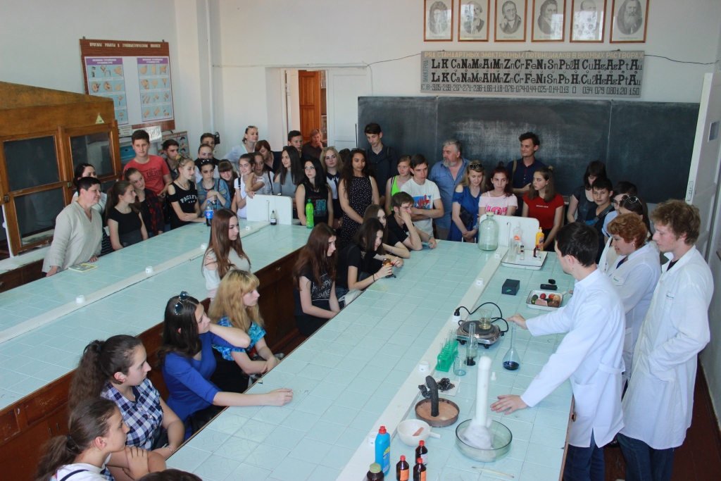 17 мая на факультете состоялось профориентационное мероприятие, которое проходило под девизом «Открой для себя мир химии!». Организаторы встречи хотели расширить знания учеников по химии, мотивировать их к изучению данной науки, привить интерес к химическим дисциплинам. Участие в мероприятии приняли ученики ООШ №20 и 22, гимназии №9 и Вознесенской гимназии «Ориентир».
