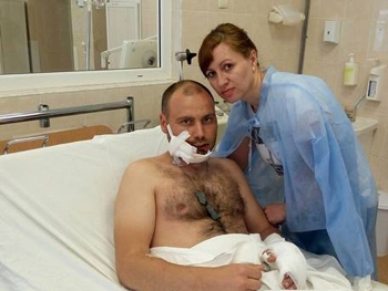 По словам врача, 38-летний военный по имени Юрий получил огнестрельное пулевое ранение лица, закрытую черепно-мозговую травму, а также сотрясение головного мозга и был доставлен в госпиталь на военном вертолете.