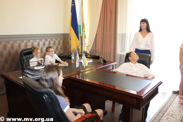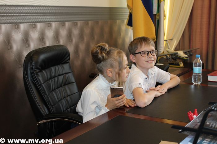 Далее школьники отправились в кабинет городского головы. Сразу стало понятно, кто может "подсидеть" Сергея Минько. Пятиклассник Вова еще в приемной спешил заглянуть в кабинет, а когда все собрались и детей пустили в кабинет №1, быстро занял главное кресло и принялся задавать вопросы. Свое любопытство пояснил тем, что хочет «побыстрее вникнуть во все особенности работы».