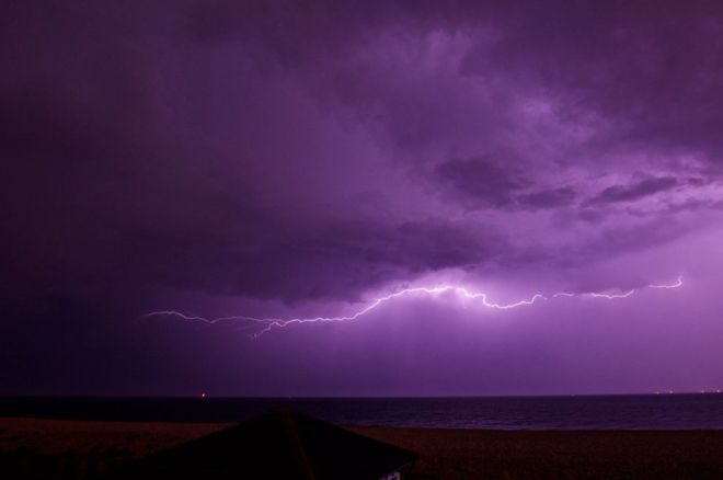Сообщается, что вспышки молний поразили небо Британии не меньше 15000 раз.