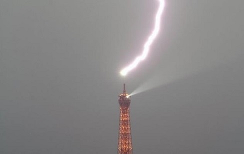 Самая известная парижская достопримечательность была построена в 1889 году, ее высота составляет 324 метра. Молнии попадают в нее нередко, однако сделать фото или снять видео удается не так часто. Первый удачный снимок попавшей в башню молнии был сделан в 1902 году.