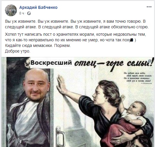 "Воскресший" Бабченко троллит недоброжелателей мэмами (ФОТО)