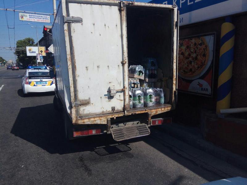 ДТП произошло на центральном проспекте города. Водитель пассажирского автобуса врезался в припаркованный автомобиль "ГАЗ", который перевозил паки с пивом.
