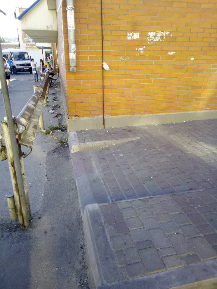 В Мелитополе съезд с тротуара упирается в ограждение