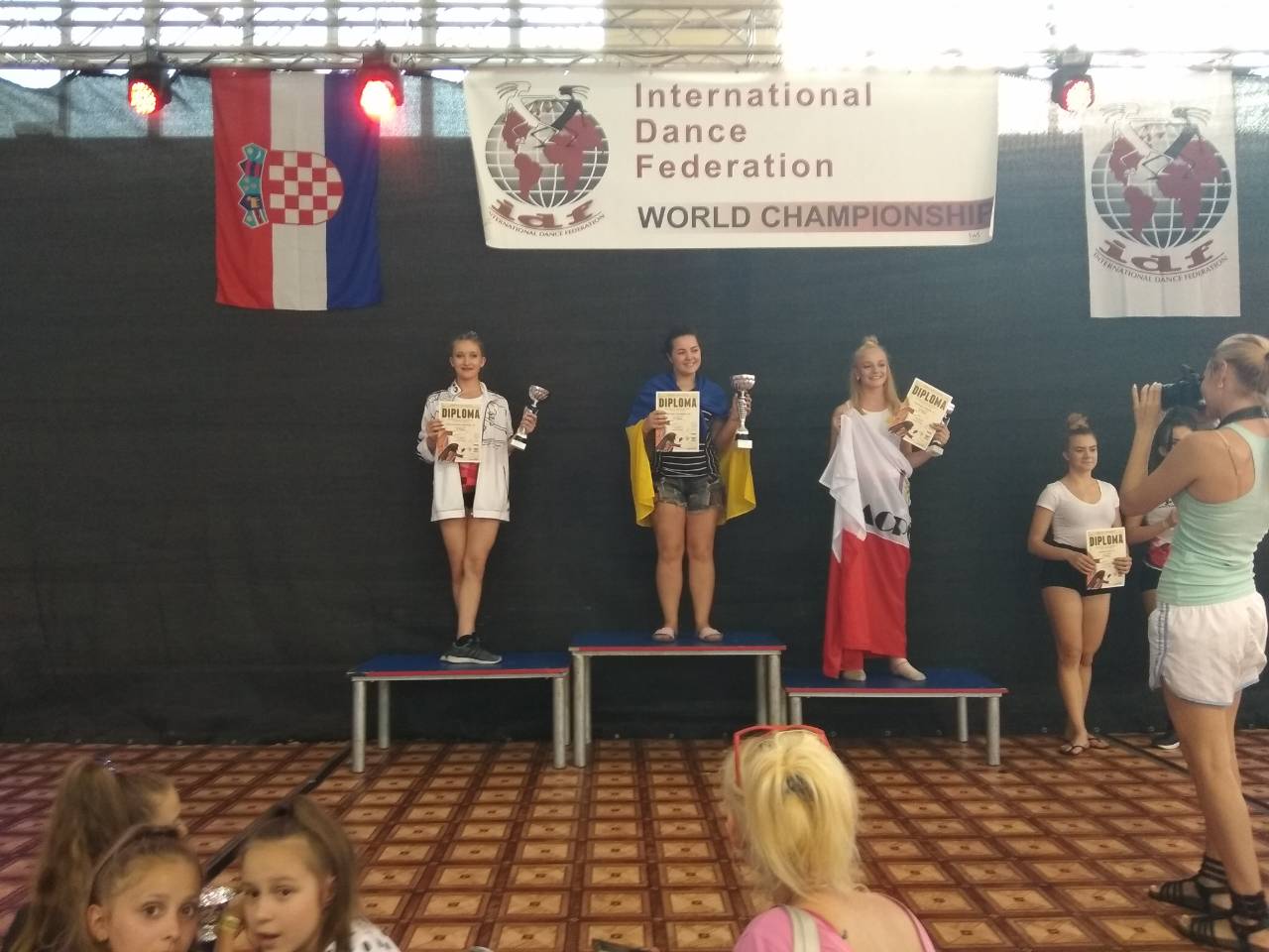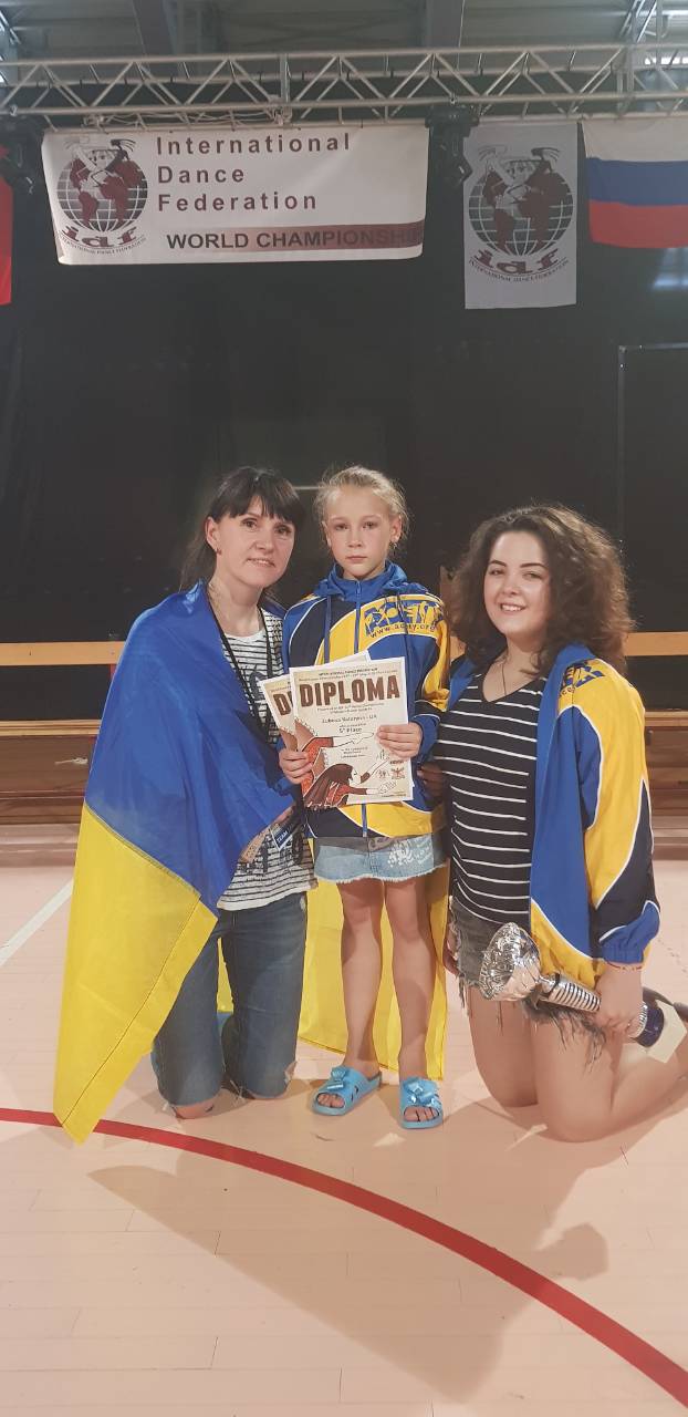 Титул чемпионки мира среди взрослых в танцевальном стиле "диско-слоу" завоевала 19-летняя Елизавета Федоренко. (Эта победа стала для Лизы подарком самой себе на 19-й день рождения, который она отметила в поезде в дороге на чемпионат). Она также стала бронзовым призером в таких стилях, как "джаз-фанк" и "стрит-дэнс-шоу". Марина Кених, выступавшая среди юниоров (до 15 лет), - дважды чемпионка мира в стилях "хип-хоп" и "хаус" и бронзовый призер в "хип-хоп дуэте". Анна Овдиенко тоже среди юниоров завоевала серебро мирового чемпионата в танцевальном стиле "хаус" и бронзовый призер в "хип-хоп дуэте".