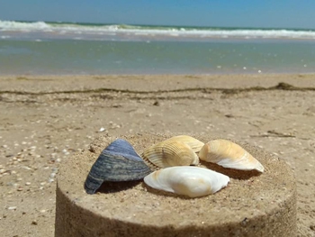 Азовское море выглядит спокойным и ласковым, однако, последствия сильного шторма видны невооруженным взглядом. Вдоль всей линии берега протянулась полоса воды, которая делит пляж, делая его "двойным".