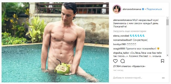Свежая публикация Водонаевой вызвала бурю самых разных чувств. На фотографии Алена запечатлела своего супруга Алексея. Мужчина снят абсолютно голым. "Мой некрасивый муж! Занимаюсь с ним сексом каждый день. Пожалейте!" – написала Водонаева. Реакция подписчиков не заставила себя долго ждать.