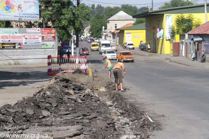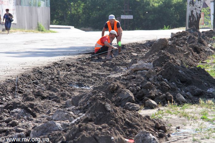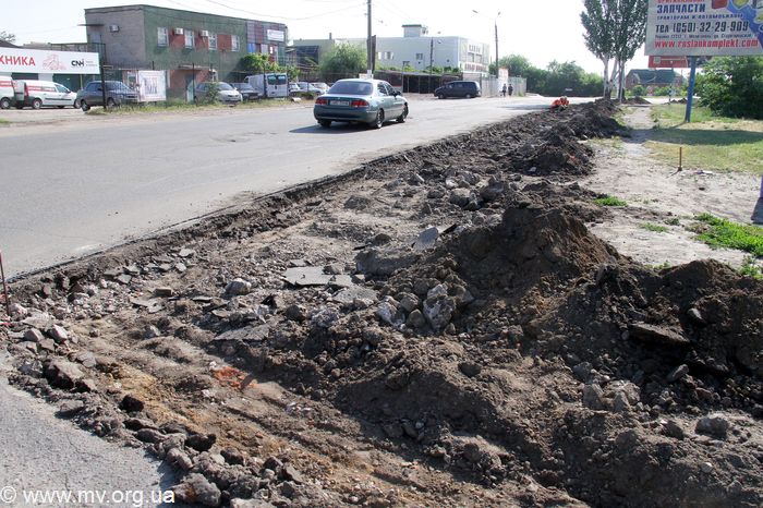 На въезде в Мелитополь со стороны Бердянска начат демонтаж бордюрного камня.