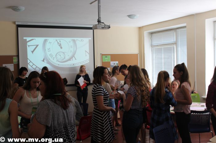 Чтобы участники семинара лучше познакомились между собой, был проведен игровой тимбилдинг. Участникам были розданы бумажные макеты часов, и на каждый час они записали «встречу» с одним из присутствующих на мероприятии. Затем ведущая называла время и вопрос, который участники должны обсудить. И те кооперировались между собой на несколько минут разговора.