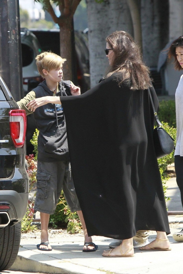 Анджелина Джоли прячется от мира за безразмерными вещами.