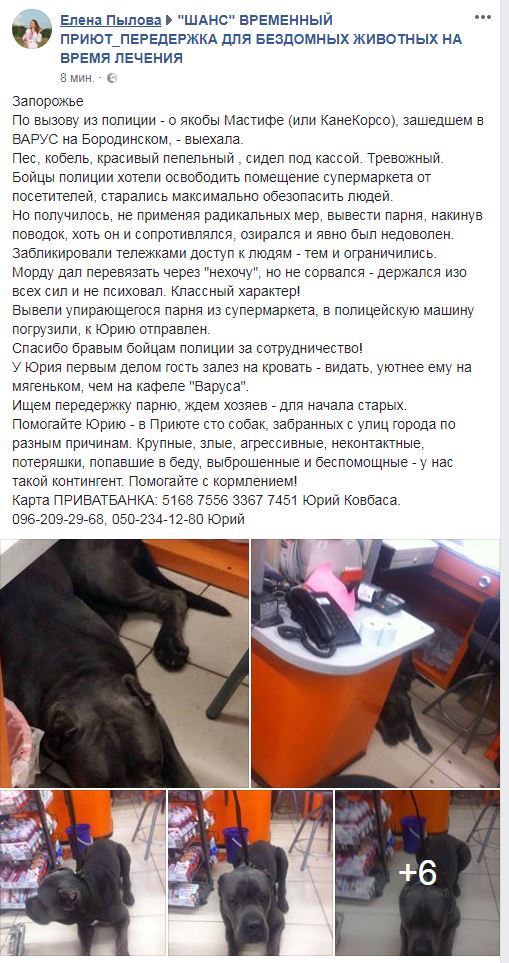 Также приехали волонтеры, которые не придумали ничего лучше, чем просто заблокировать выход собаке к людям тележками. После чего накинули на собаку поводок, а затем перевязали морду. Во время “задержания” собака очень упиралась. В итоге животное все же вывели из магазина и посадили в полицейскую машину, чтобы отвезти в приют до того момента, пока не найдутся хозяева.