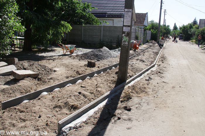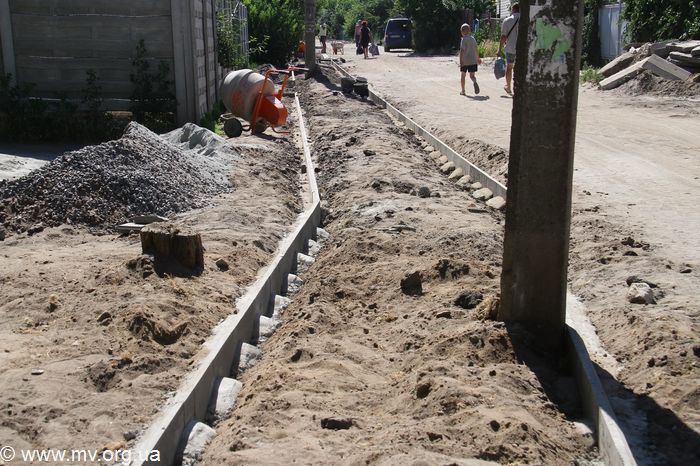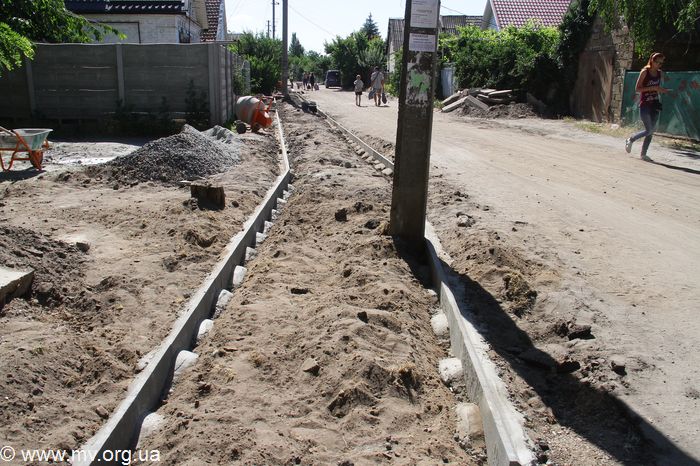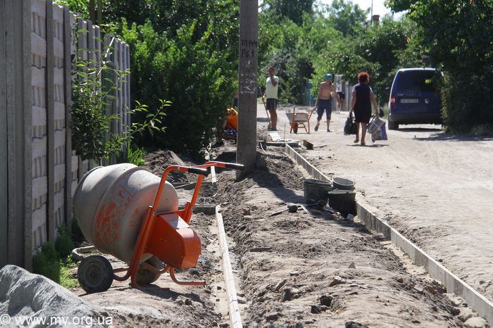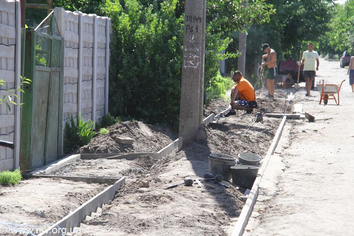 Укладка тротуара – это, наверное, первый пример благоустройства на этой улице за долгие годы. Дорога здесь грунтовая, богатая на ямы, летом от проезжающих автомобилей пыль стоит столбом, а в грязи после дождей можно утонуть. Конечно, хотя бы хорошему тротуару, выложенному плиточкой, горожане рады. Но их смущают столбы, расположенные теперь прямо на пешеходной части.