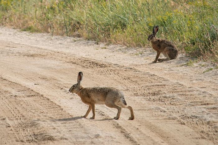 Запорожец Юрий Батаев опубликовал серию снимков, сделанных на острове Бирючий, который является частью Азово-Сивашского парка. Особое внимание фотографа привлекли зайцы.