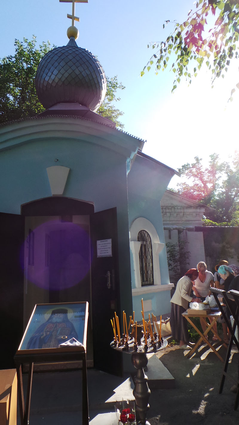 Особый день этот для небольшого храма, что находится при Мелитопольской первой городской больнице и носит имя этого необычного врача. Литургия тут служится один раз в год. Прихожане храма - персонал больницы, пациенты, люди, которые пришли навестить своих родных. 11 июня, в храмовый праздник, верующие исповедовались, причащались, возносили прошения к Богу на молебне, а потом разделили братскую трапезу.