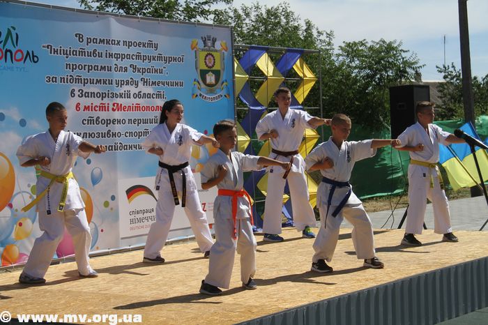 На празднике присутствовали советник проекта "Поддержка территориальных громад Украины в связи с увеличением количества внутренне перемещенных лиц" Виктория Василенко и координатор проекта "Развитие социальной инфраструктуры в связи с увеличением количества ВПЛ" Олег Кравченко. По словам городского головы Сергея Минько, из-за событий на Востоке страны Мелитополь принял более 6000 вынужденных переселенцев, за счет чего увеличилась и наша громада, расширились ее функции в части обеспечения достойных условий жизни, интеграции и адаптации новых мелитопольцев. Открытие этой площадки - прекрасный повод показать продуктивность работы в расширении городского пространства и создания социальной инфраструктуры, в первую очередь, для людей с инвалидностью и вынужденных переселенцев. С. Минько выразил глубокую благодарность народу и правительству Германии, всем людям, которые вложили средства и приложили усилия для создания этого проекта. Он надеется, что это только первые шаги на пути плодотворного совместного сотрудничества.