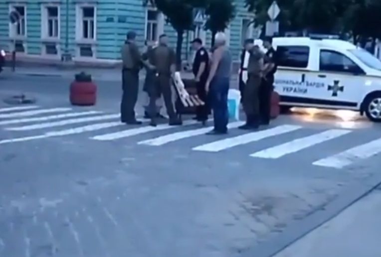 В Черновцах бабушка украла скамейку с центральной площади (видео)
