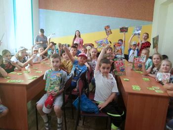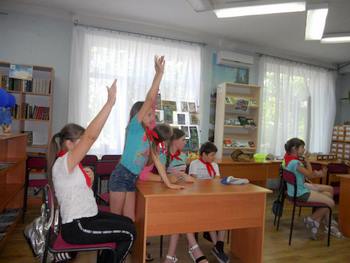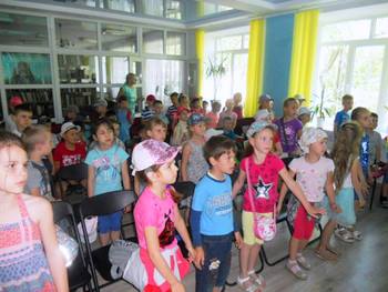 В следующий раз литературный библиодесант высадился в самом летнем детском лагере "Дружный". Дети отвечали на вопросы викторины, вспоминали названия волшебных и бытовых сказок, любимых героев : людей, домашних животных, диких зверей, насекомых и других. Библиотекари продемонстрировали школьникам новые книги и детские периодические издания.