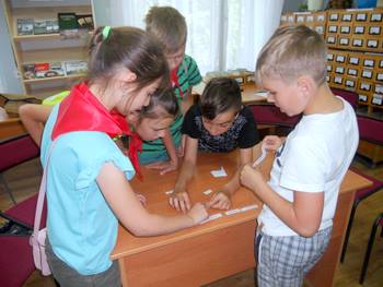 Так, библиотека им. В. Маяковского сотрудничает с летним детским лагерем "Радуга", который радостно приветствует всю детвору района Новый Мелитополь. А открыла цикл летних встреч игра-путешествие "В стране Вообразилии". На каждой станции Вообразилии детей ожидали каверзные вопросы литературной викторины и литературного кроссворда, испытания в роли иллюстраторов сказок и знатоков пословиц.