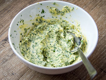 Сливочное масло для этого рецепта необходимо довести до комнатной температуры, но не более - оно должно быть мягким, но не жидким. Соотношение ингредиентов вы можете корректировать по своему вкусу, а также менять, например, можно приготовить варианты с кинзой или базиликом.