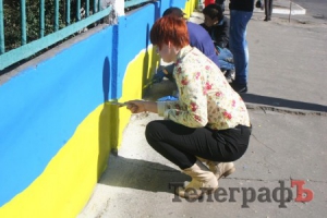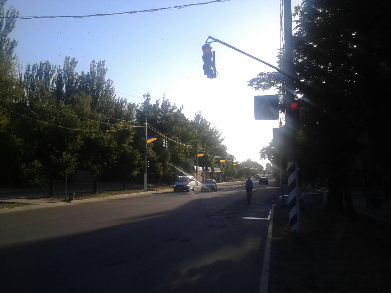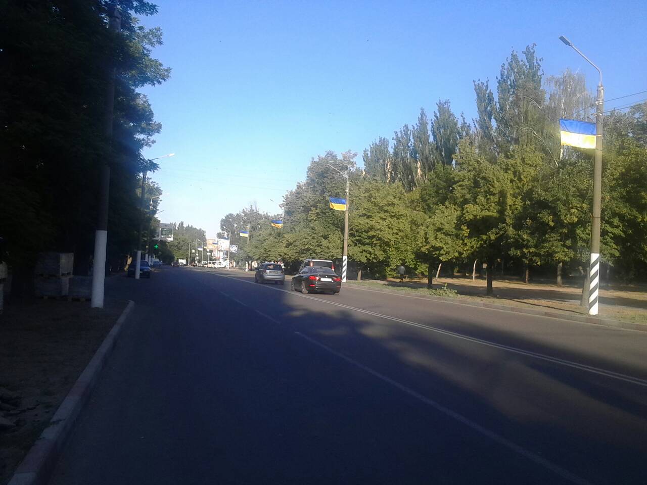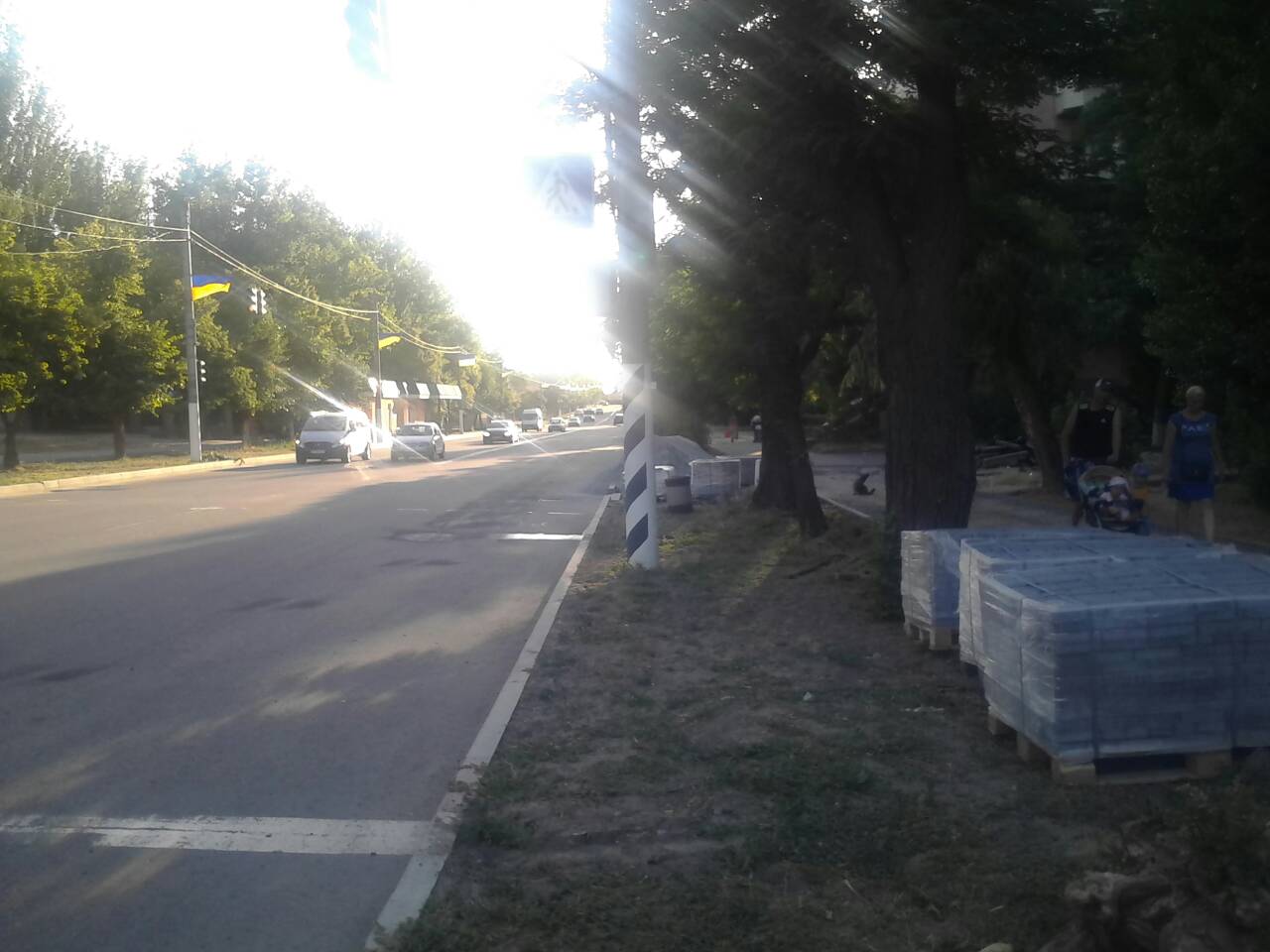 Сейчас производится укладка тротуарной плитки по обеим сторонам улицы. А два дня назад на каждом столбе по правой стороне бульвара появились новенькие украинские флаги.