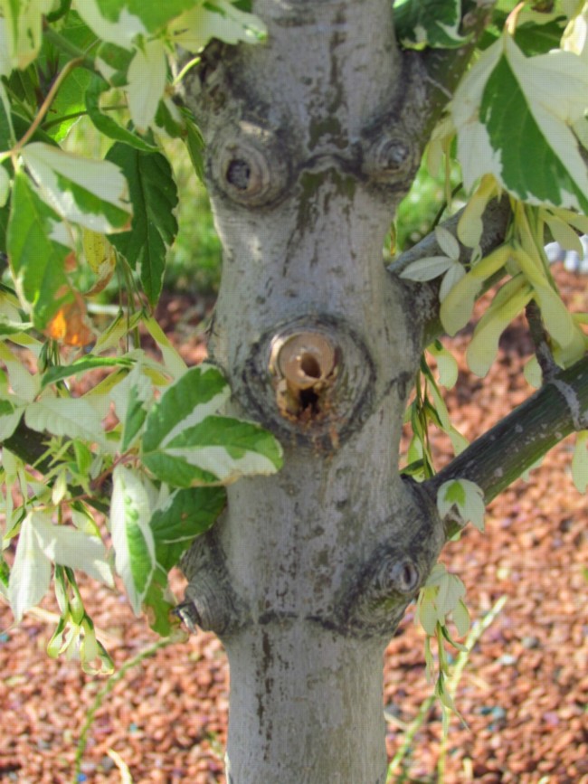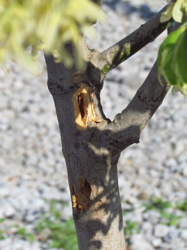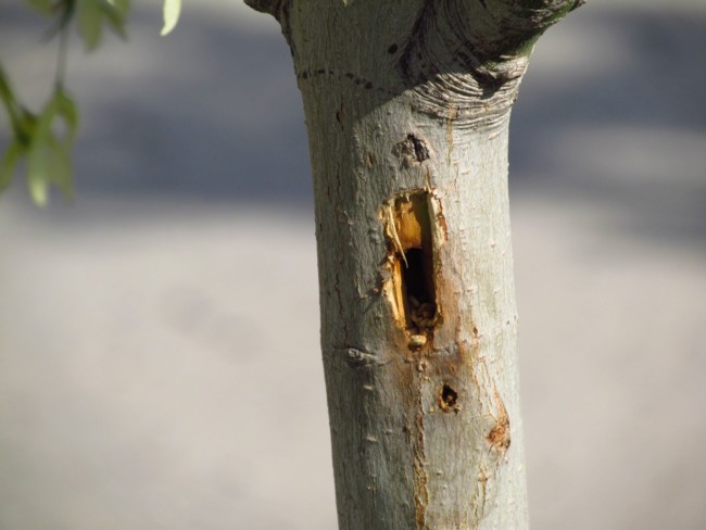 Вообще, прекрасно видно что это работа дятла.Что дерево в этих местах больное и трухлявое.Не смешите народ такими статьями и фото.