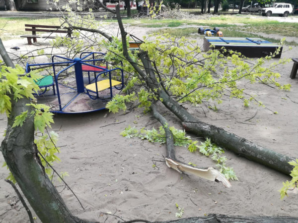 В Запорожье огромное дерево рухнуло на детскую площадку (фото)