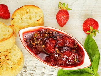 Сочетание клубники с пряной ноткой базилика неожиданно, но очень гармонично. Главный секрет здесь - в аромате базилика. Чтобы он сохранился, кладите базилик в самом конце варки.