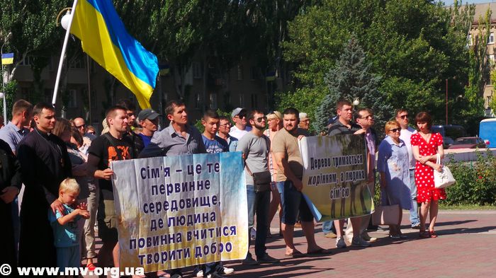 На пл. Победы пришли верующие (в основном церковных организаций протестантского толка) и представители некоторых общественных организаций, которые протестуют против слишком агрессивного, по их мнению навязывания гендерного и сексуального равенства в Украине.