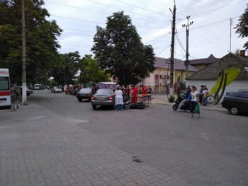 Сегодня, 27 июня, буквально час назад в Токмаке Запорожской области происходит авария с участием скутера и легкового автомобиля.