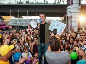 Вчера, 26 июня, в аэропорту Борисполь более пятисот поклонников тревел-шоу «Мир наизнанку» собрались для того, чтобы провести ведущего Дмитрия Комарова и оператора Александра Дмитриева в новую экспедицию, которую зрители телеканала «1+1» увидят в новом сезоне проекта осенью.