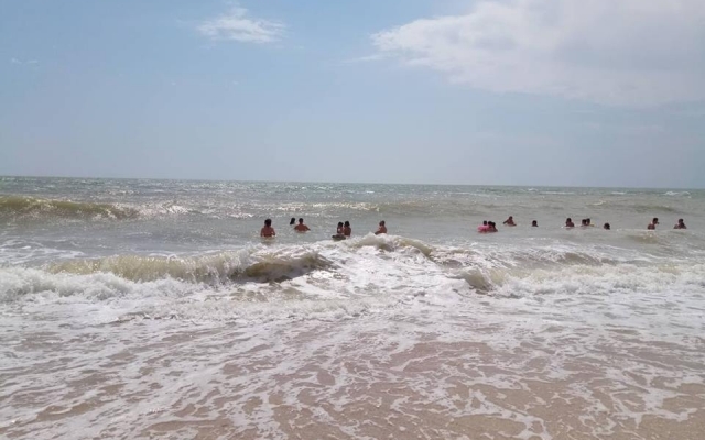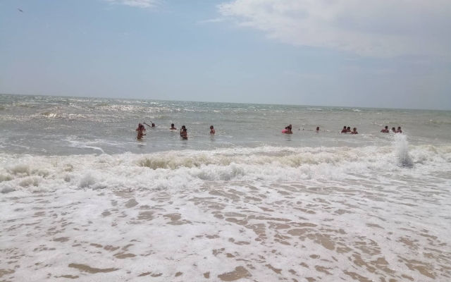 Тем не менее высокие волны вовсе не смущают отдыхающих, и те продолжают купаться. Людей на берегу очень много, ведь вчера начались продолжительные выходные, и народ масово ринулся к морю.