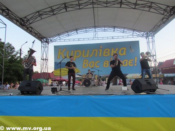 Показали свои номера владельцы кубка мэра Кирилловки ІІ Всеукраинского фестиваля «Kirillovka-fest» эстрадный ансамбль «S.W.I.I.M». Ребята сыграли много интересных композиций, которые еще больше подняли праздничное настроение всех присутствующих. Жители и гости поселка весело подпевали и подтанцовывали, сообщает сайт поссовета.