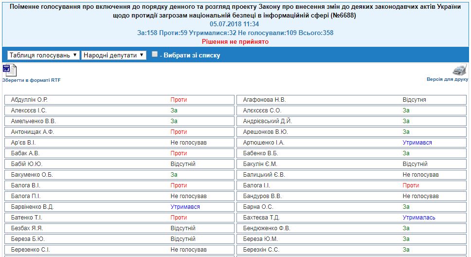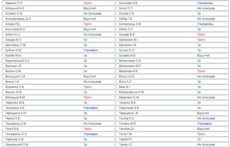 Из девяти запорожских народных депутатов поддержали рассмотрение законопроекта только трое – Валентиров, Фролов и Сабашук. Не голосовали за принятие решения тоже трое – Балицкий, Бандуров и Кривохатько. Отсутствовало двое нардепов – Пономарев и Богуслаев, а Артюшенко вовсе воздержался от голосования.