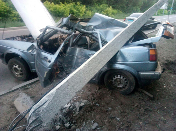 Дорожная авария случилась сегодня, 7 июля, около 3.30. В автомобиле "Volkswagen Golf" ехали работники "Городских тепловых сетей". 23-летний водитель легковушки врезался в столб, в результате чего тот упал на машину.