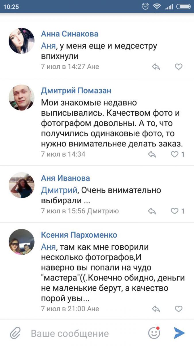"Мои знакомые недавно выписывались, качеством фото и фотографом довольны", - пишет другой пользователь.