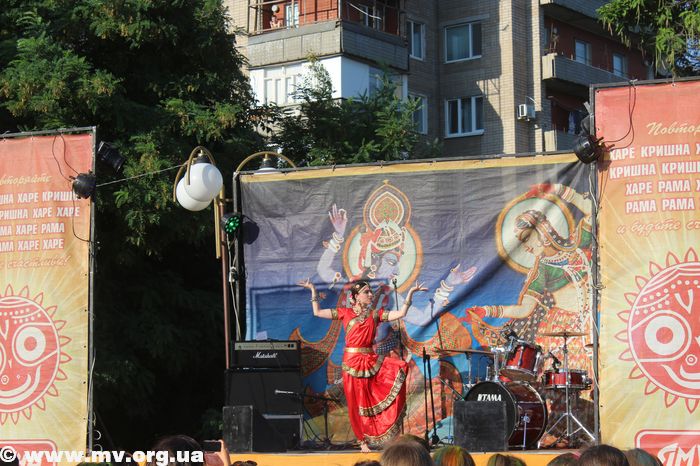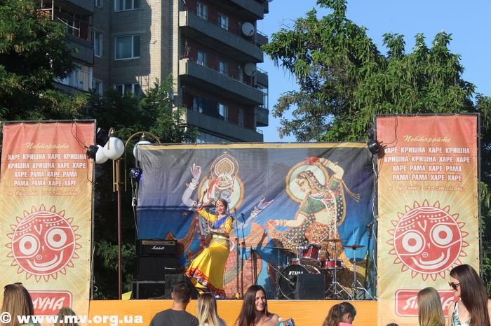 А на сцене тем временем проходил небольшой концерт, организованный почитателями индийской культуры: танцы, песни, игра на музыкальных инструментах. В перерывах между "раскрашиванием" друг друга горожане с интересом наблюдали за тем, что происходило на сцене.